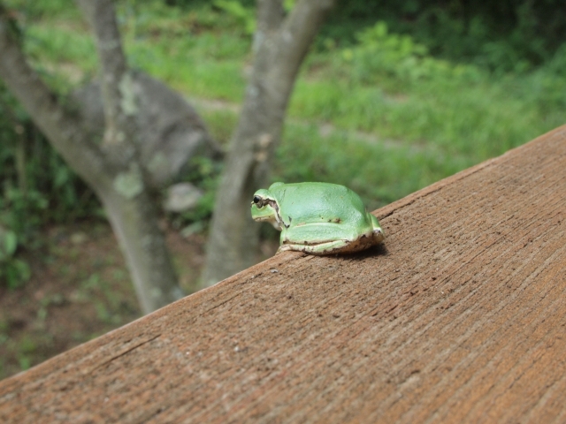 近くに川や農水路があるので、庭にカエルがたくさんいた。息子と娘に捕まったカエルは、ビニールプールに放り投げ入られ、おもちゃ同然に扱われるという悲惨な運命が待つ。まあ、目を離した隙に逃げてくれるので天に召されずすみました。