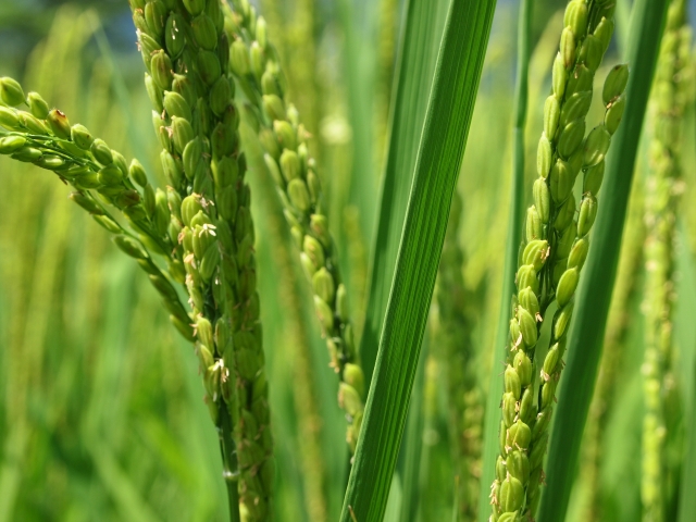 綺麗な緑だよなあ。葉と稲穂が見せる緑のコントラストが素晴らしいと思う。