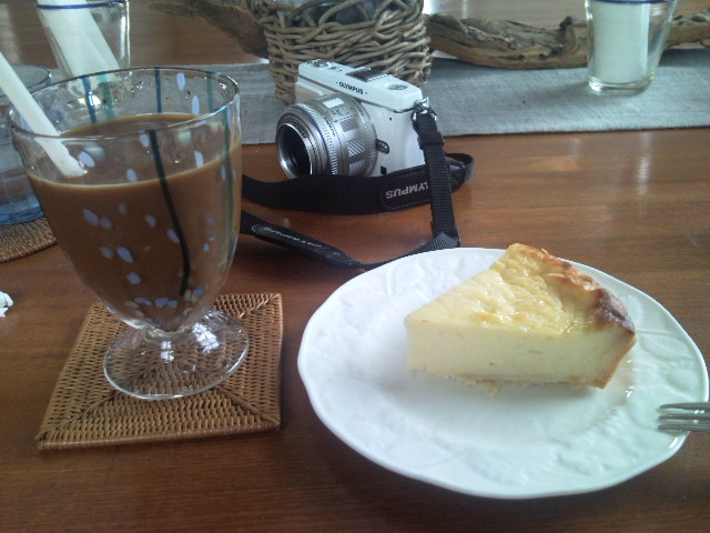 嫁にも気晴らしをしてもらおうと、近くのカフェに連れて行く。ケーキとアイスコーヒーでご機嫌になってくれて嬉しい。