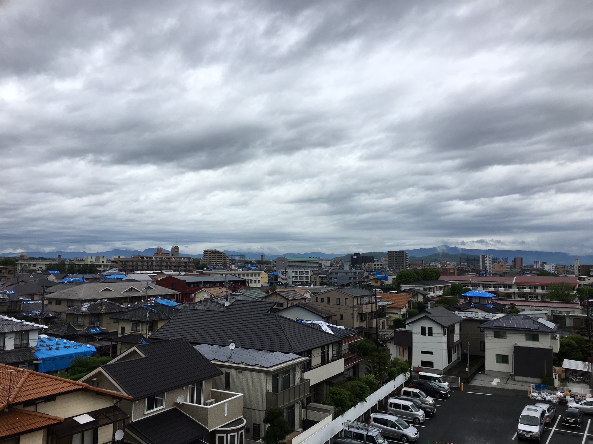 高所から見るとブルーシートだらけである。
