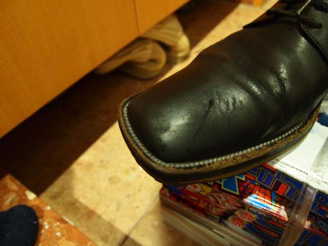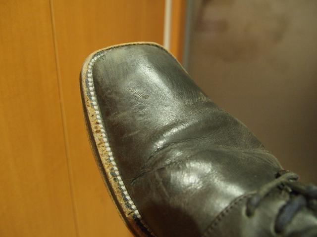 終わりました。トウ(つまさきの甲の部分)は鏡面仕上げにしてみました。ワックスをやや多めに塗り、水滴を2,3滴たらして磨く。これを3回ほど繰り返して10分くらい磨くとピカピカになります。