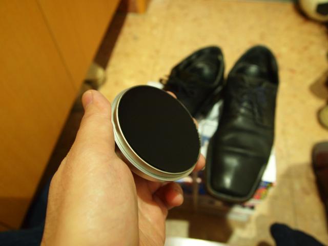 ワックスはツヤ出しだけでなく、水滴を弾いてくれる効果がある。ちゃんと手入れしていれば雨でも平気なのだ。木綿の布で適度に革靴に塗りたくる。その後、磨く!!
